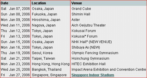 Poslední známé termíny asijského lednového turné Dream Theater 2006:![]() [Zapsáno 9. 1. 2006 ]