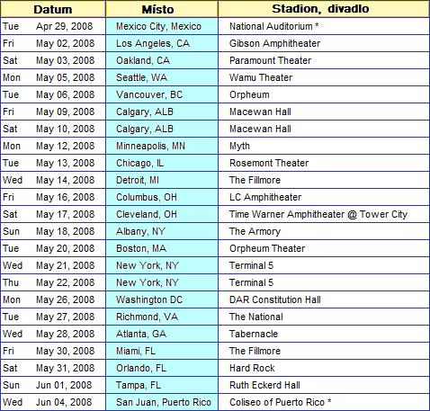 Tak zde uvádím přehled turné DREAM THEATER pro letošní rok... zatím se týká jen Severní ameriky, ale což o to??? Třeba nás na podzim překvapí !!!!