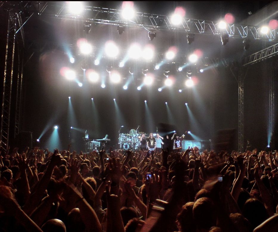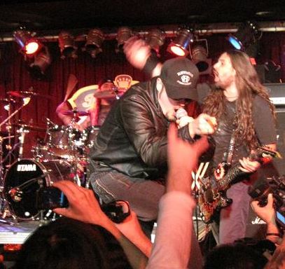 A na závěr jedna z mála společných fotografii Mikea se skupinou... (ze společného turné s Iron Maiden, 4.3.2010)