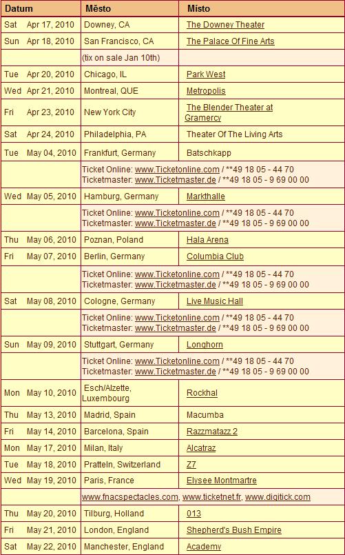 Když mluvíme o změně plánů, Obávám se, že mám nějaké zklamání zpráva pro naše fanoušky severní Ameriky: po vážné diskusi ve skupině a po hodnocení s naším manažerem a agentem, jsme se rozhodnout proti dalšímu turné v USA na jaře, jak jsme původně plánováno...z mnoha důvodů, prostě by to nefungovalo tak, jak jsme původně doufali. (a ano, Texas, já si stále pamatují dlužíme pro příště!)