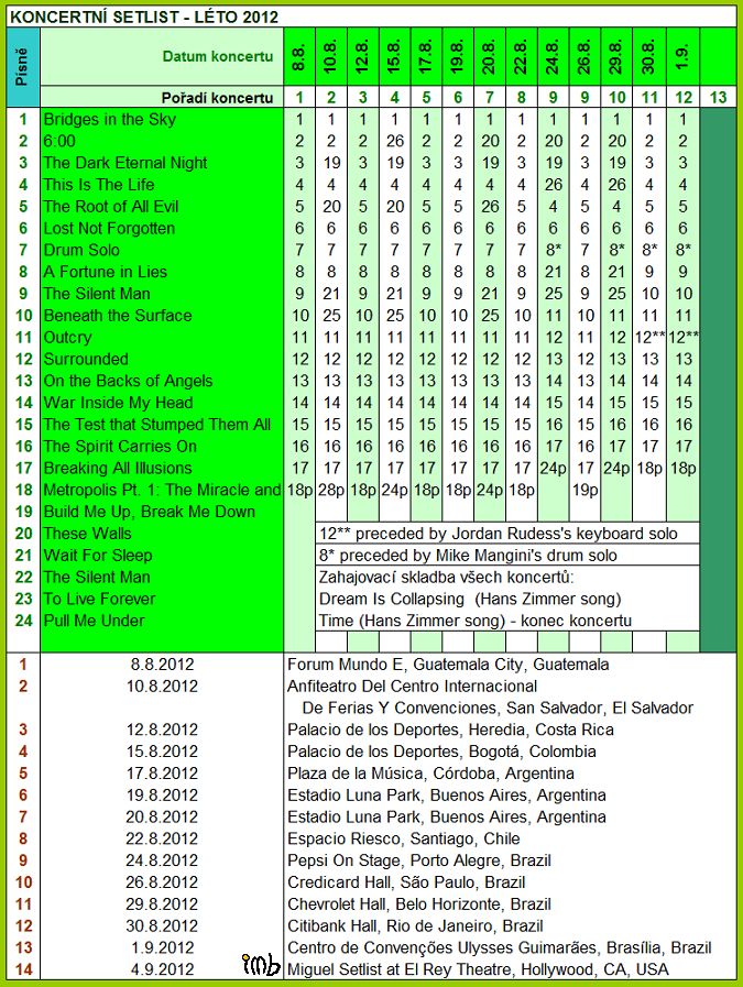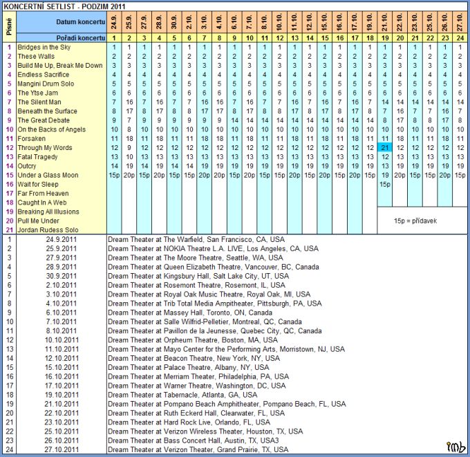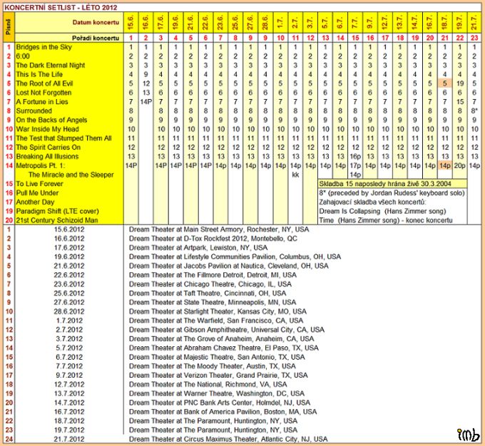 Probíral jsem se novinkami letošního roku a zjistil jsem, že jsem nedoplnil ještě setlisty z letošního severoamerického a jihoamerického turné Dream Theater, což se nyní snažím napravit. Takže severoamerické turné...