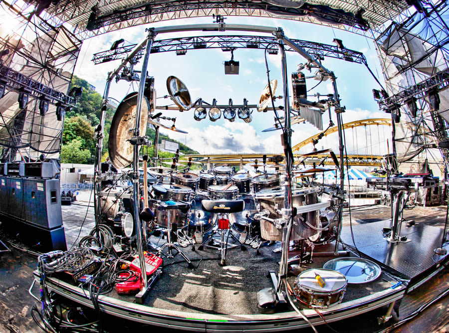 na koncertování s Dream Theater a objevil jsem i toento zajímavý náhled na jeho bicí sestavu...![]() |