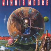 Vinni Moore, Time Odyssey Vyšlo 1988, Squawk/Polygram Hrají: Basa - Michael Bean, Bicí - Joe Franco Klávesy - Jordan Rudess, Kytary - Vinnie Moore Nahráli jsme je v Kajem Studios kousek od Philadelphie v lednu 1988. Byla to neuvěřitelná spolupráce s klávesistou Jordan Rudessem. On nahrál absolutně úžasný materiál. Byla to velká dávka jeho hudební energie. Nahrávání tohoto CD byla výzva, protože je zde okolo 60 minut hudby, a například u Mind's Eye, nám málem chyběl čas. Pracovali jsme na něm 18 nebo 20 dní. "As Time Slips By" je jedna z mých nejoblíbenějších písní, kterou jsem kdy napsal. Vzácně poslouchám svou vlastní hudbu, ale když slyším tuto skladbu, jsem vždy pln emocí. | ||